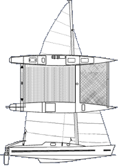 grande (trilho e carro); adriças e escotas pré-estirados; deck