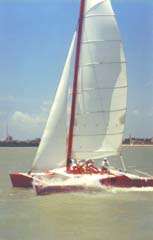 é um catamarã de linhas elegantes, habitável, amplo, muito prático,